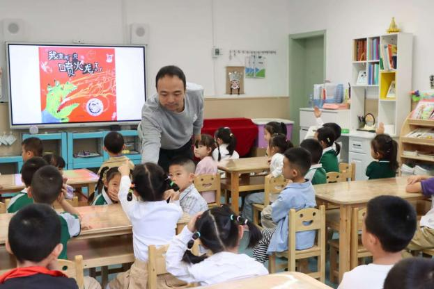 上午9時,實驗幼兒園大六班活動現場童趣盎然。閱讀指導李洲老師以繪本《我是一只噴火龍》為核心,結合 3-6 歲幼兒情緒管理敏感期特點展開教學。通過PPT畫面重現“阿古力被蚊子叮咬后變身噴火龍,燒毀早餐、誤傷朋友”的爆笑情節,引發孩子們陣陣歡笑。互動環節中,模仿“噴火”動作,幼兒踴躍舉手分享“滅火方法”,當講到“眼淚澆熄火焰”的反轉結局時,特意引導孩子理解“合理釋放情緒”的重要性:“就像阿古力一樣,哭不是壞事,是讓壞情緒飛走的好辦法”。繪本故事講完后,李洲老師帶領幼兒梳理繪本情節,回憶繪本細節內容,培養幼兒的閱讀習慣。